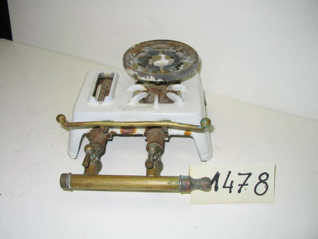 Description: Fausse lampe à huile fonctionnant avec un bec de type Bengel. Bec à double courant d'air (ou bec rond) dérivé du bec d'Argand. Objet en laiton. Foyer utilisant le pouvoir éclairant du gaz. Couronne cylindrique en stéatite percée, à sa partie supérieure, d'une série de trous rapprochés donnant une flamme en forme de nappe cylindrique. Cheminée en verre reposant sur une galerie métallique. L'air arrive à l'extérieur et à l'intérieur de la flamme (d'ou le nom de bec à double courant d'air). Les différents perfectionnements (Bengel..) ont eu surtout pour but la régularisation de l'accès de l'air.